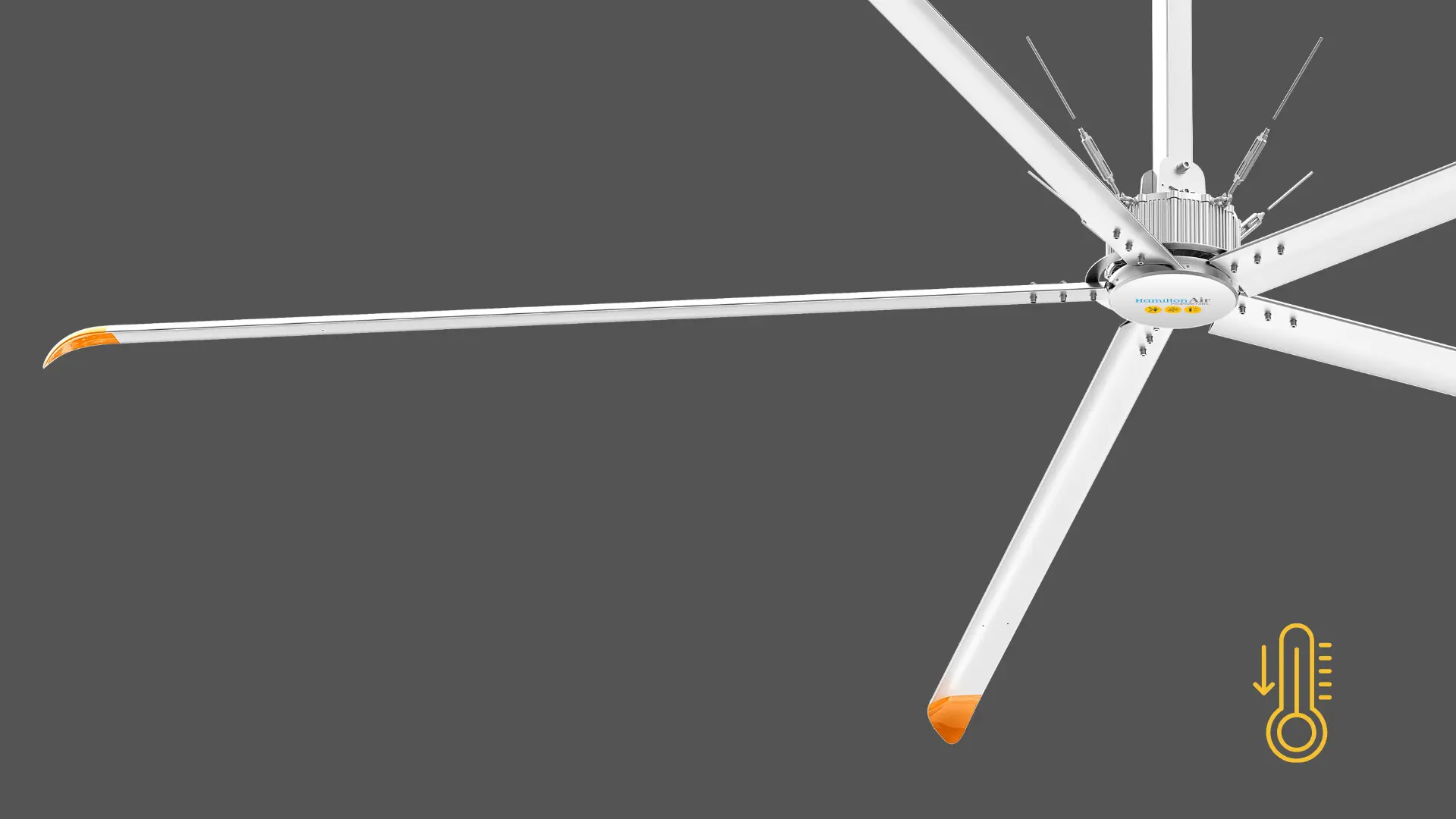 Quạt trần HVLS hoạt động dựa trên nguyên lý dịch chuyển khối lượng không khí lớn với tốc độ thấp.
