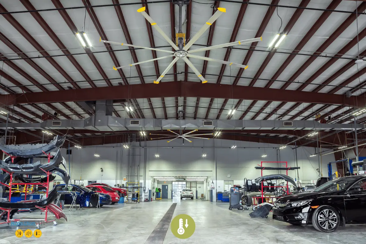 ➡️ 1 quạt HVLS có thể thay thế 6–10 quạt công nghiệp thông thường.